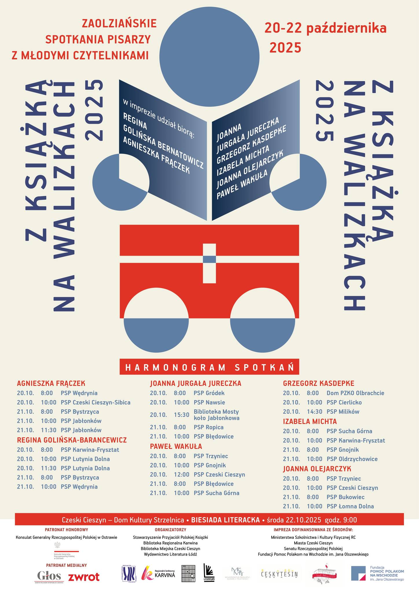 Rysunki, odpowiedzi i prace pisemne z danymi uczestnika (imię, nazwisko, klasa, szkoła) prosimy wysyłać pod adres: Oddział Literatury Polskiej, Biblioteka Regionalna Karwina, Masarykovo nám. 9/7, 733 01 Karviná - Fryštát lub oddać w Bibliotece Miejskiej w Czeskim Cieszynie przy ulicy Havlíčka 6 lub księgarni przy ul. Čapka 7 w Czeskim Cieszynie. Wszelkie informacje można uzyskać pod nr tel.: 596 312 477 e-mail: polskie@rkka.cz